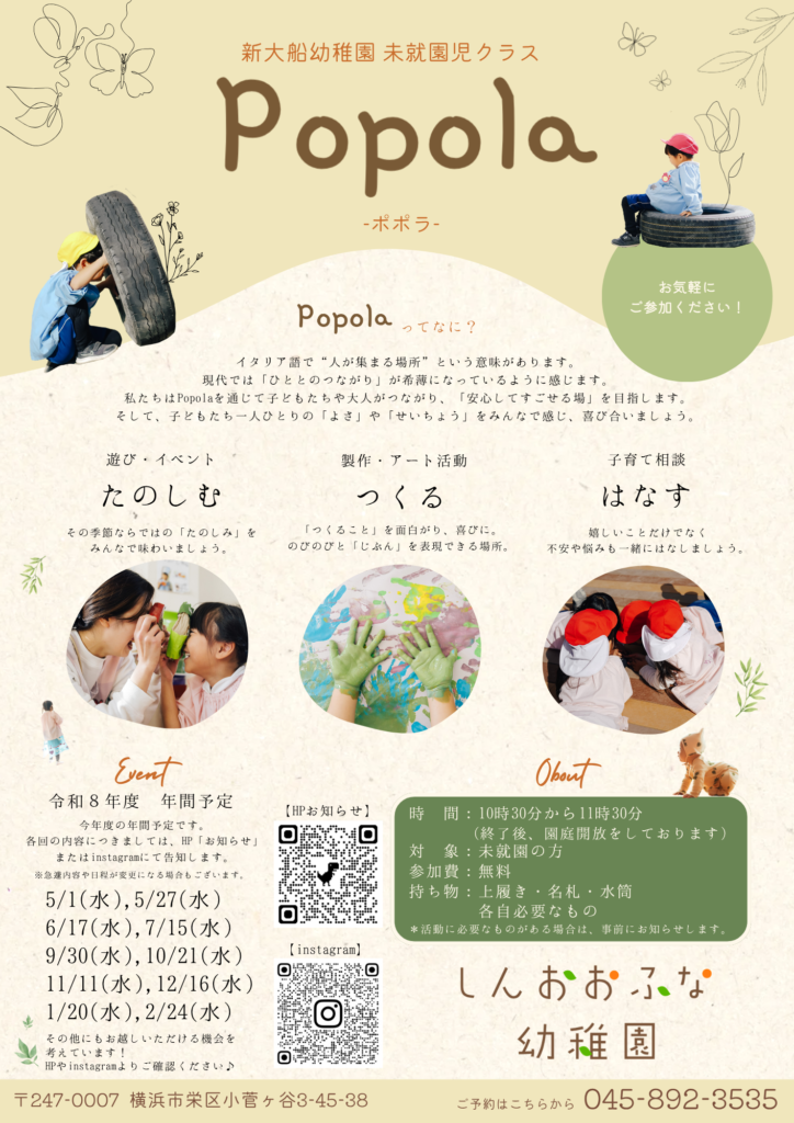 未就園の最新情報は、こちらのHPお知らせまたはinstagramよりご確認ください。